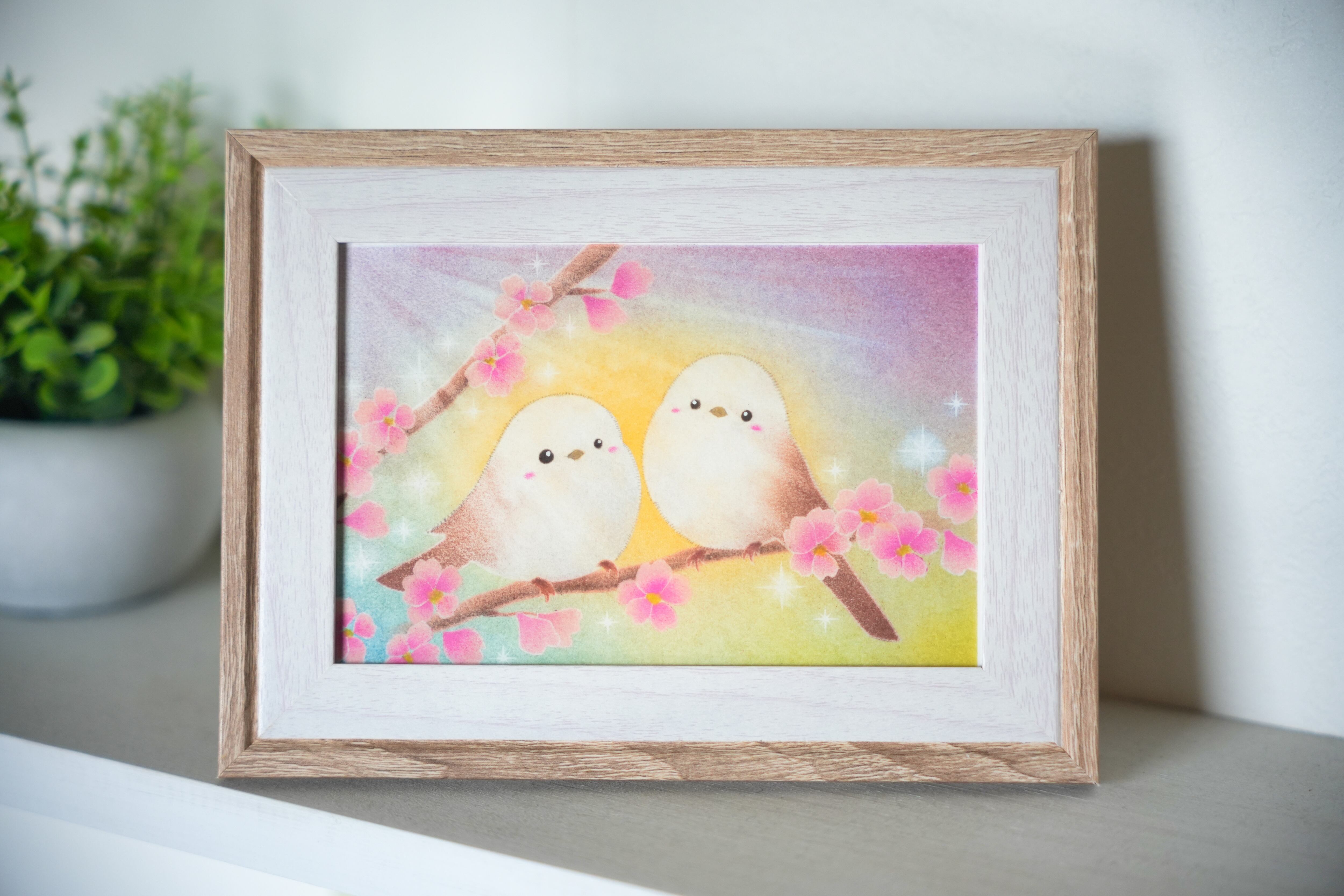・パステル画材を粉にして塗る技法のため、写真に映らないほどの汚れがある場合がございます。