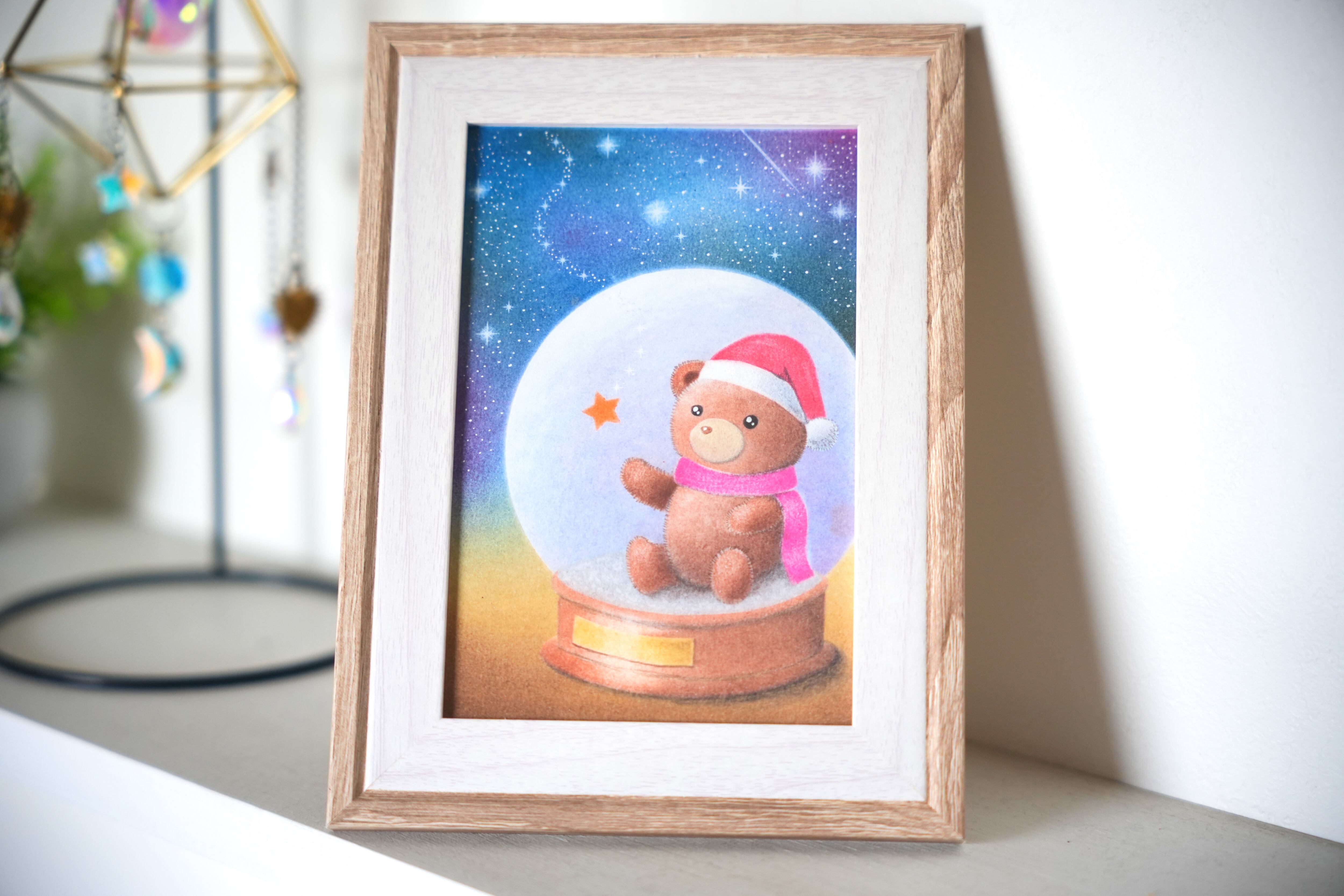 ・パステル画材を粉にして塗る技法のため、写真に映らないほどの汚れがある場合がございます。