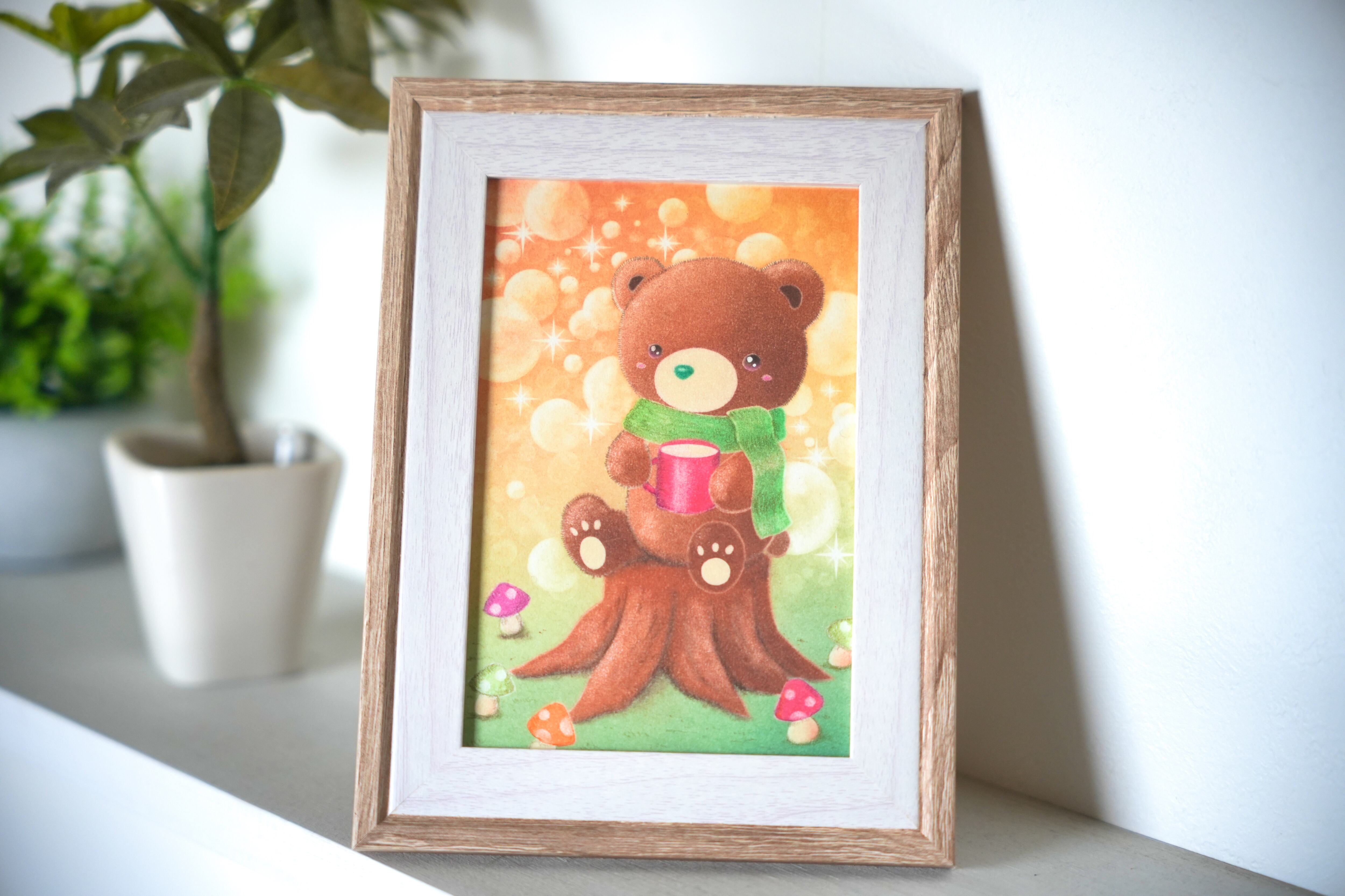 ・パステル画材を粉にして塗る技法のため、写真に映らないほどの汚れがある場合がございます。